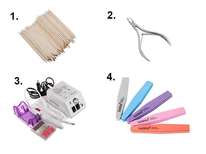 Апельсиновая палочка, 2. маникюрные ножницы, 3. кусачки для ногтей, 4. пилочка для ногтей.