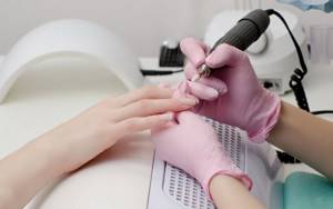 - Аппаратный маникюр с использованием фрез и пилок для удаления кутикулы и выравнивания ногтевой пластины.