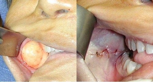 Операция проводится чаще всего под общей анестезией, потому что пациентам трудно преодолеть психологический барьер при манипуляциях на лице. Хотя хирург может принять решение убрать комки и под местным наркозом. На слизистой оболочке щек делаются небольшие (1-2 см) разрезы.