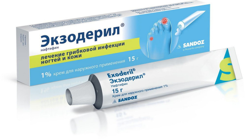 Препарат на основе Нафтифина из класса аллиламинов. Обладает фунгистатическими, фунгицидными и антибактериальными свойствами. В терапии микозов ногтей используют дольше 6 месяцев (чем больше повреждение, тем дольше курс). В этот период препарат 2 раза в день втирают в пораженные и соседние им ногтевые пластины. Наносить средство нужно после душа и полного высыхания ног. При запущенном онихомикозе крем наносят на пальцы и межпальцевое пространство, чтобы не допустить распространение инфекции на кожу. После полного исчезновения признаков заболевания продолжают лечение 2 недели.