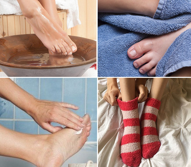 - Распарьте ноги в теплом мыльно-содовом растворе (1 ст.л. соды на литр воды).