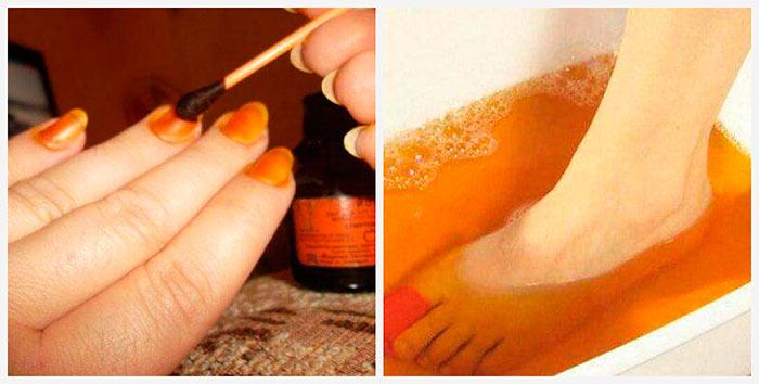 До появления современных средств от грибка в домашних условиях лечились и йодом: макали ватку на спичке в 5% раствор и смазывали поражённые места. Выясняется, и в наши дни можно успешно применять йод (пузырёк стоит 20 руб.), причём на женских форумах утверждают, что это ещё и прекрасная профилактика грибка ногтей.