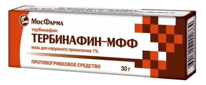 1% мазь можно использовать в лечении онихомикоза. Для этого средство дважды в день втирают в ногти на протяжении 3-6 месяцев. Не следует путать препарат с Ламизилом. Действующее вещество одно и то же, однако в инструкции к импортному препарату ничего не указано о микозах ногтей. Цена средства около 80 рублей.