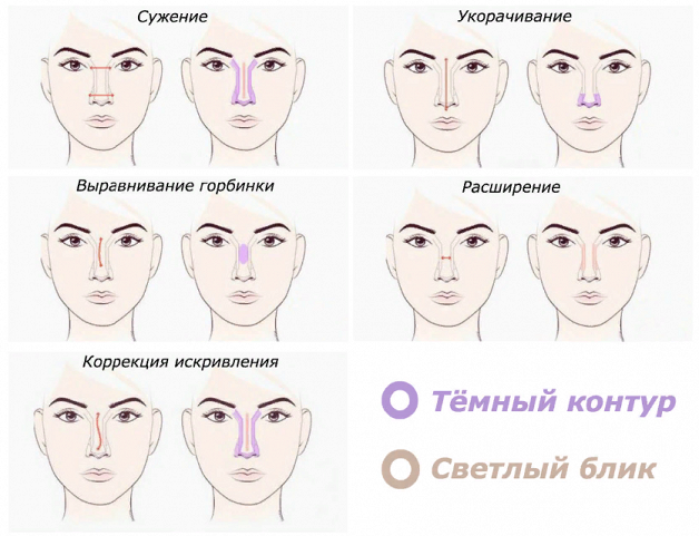 Меньше всего внимание контурингу уделяют обладательницы овальной формы лица. Им можно только почеркнуть его контуры, подправив скулы бронзером или румянами. Чтобы сделать нос аккуратнее нужно затемнить его боковую часть