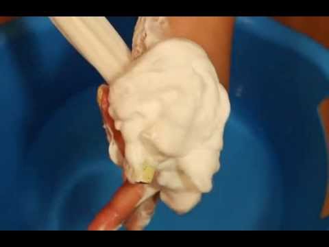 Посмотрите видео, как взбить пенку для умывания с помощью сеточки: