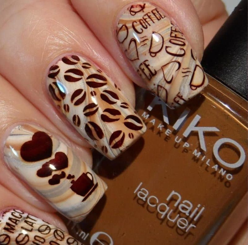 Не бойтесь фантазировать, тогда вы сможете создать неповторимый и единственный в своем роде нейл-арт, который обязательно привлечет к себе взгляды окружающих. Мы же хотим подарить вам хотя бы немного хорошего настроения, вдохновения и желания творить. Просто взгляните на фото, которые мы собрали для вас, и вы поймете, насколько разным и интересным может быть дизайн кофейной тематики.