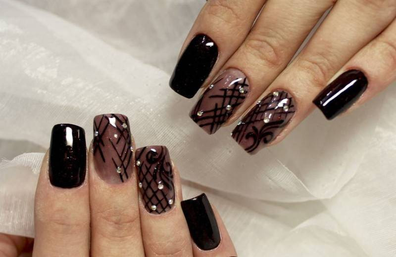 Это одна из самых красивых разновидностей нейл-арта. Коричневый колер выглядит насыщенно. Такой маникюр отлично впишется в праздничный образ.