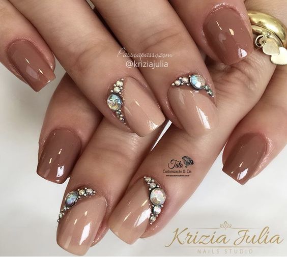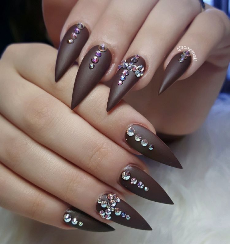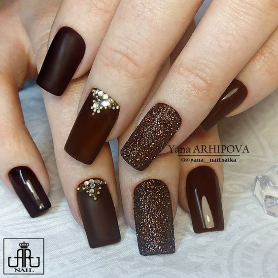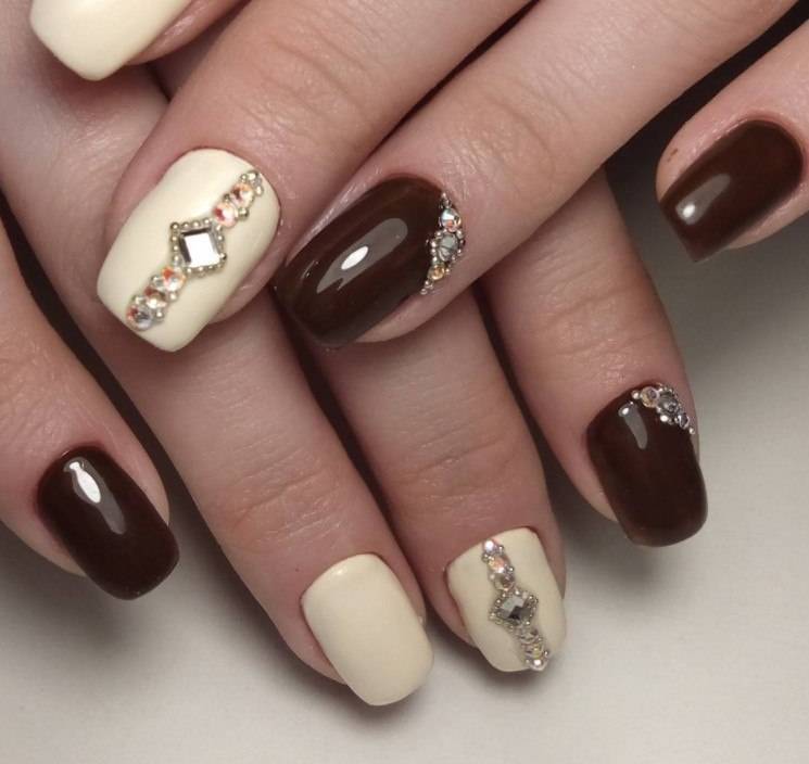 Шоколадный маникюр со стразами 2022 фото великолепные идеи