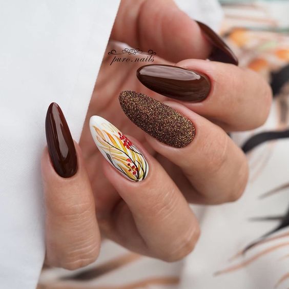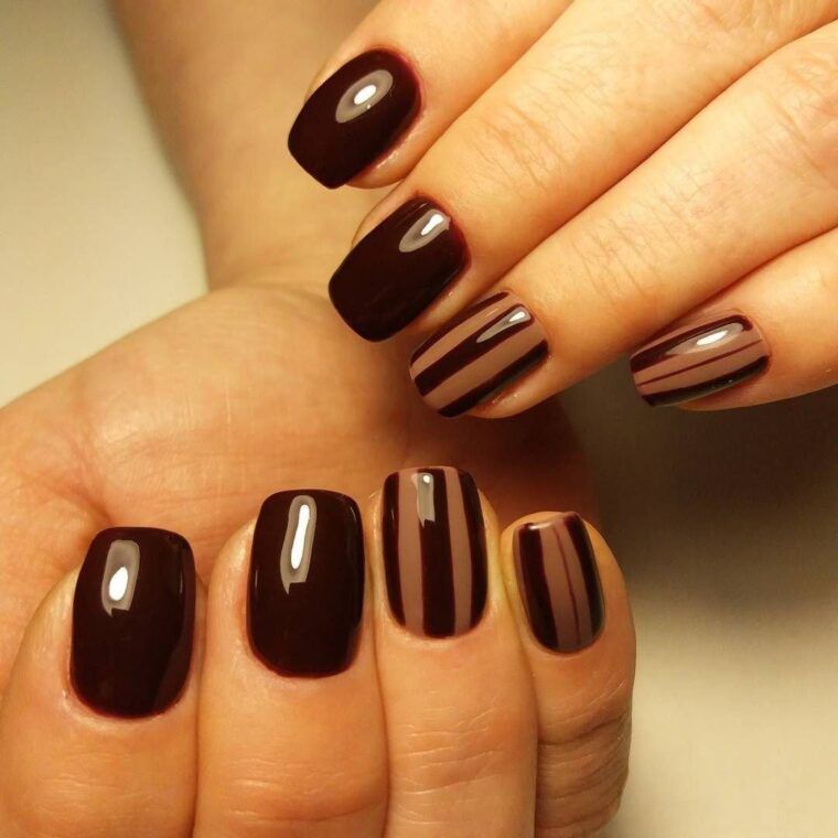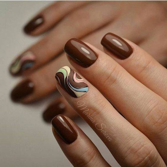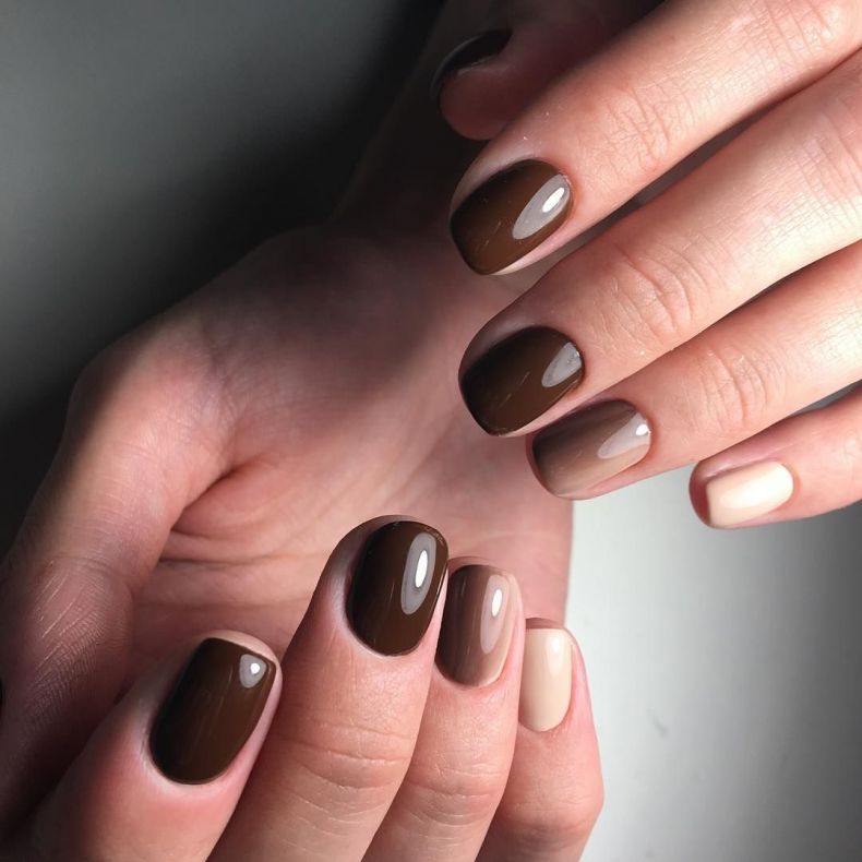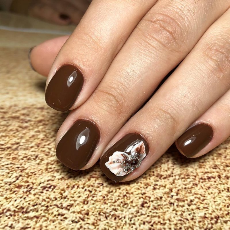 Коричневый нейл-арт может быть выполнен в самых разных оттенках — от красного кирпича до темного шоколада.