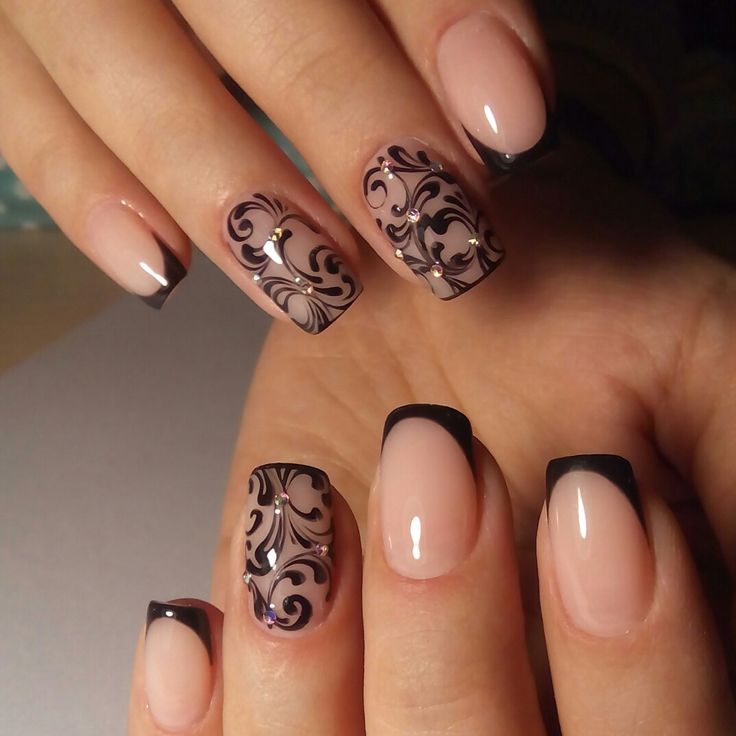 Френч можно сделать на основе черного цвета, с белым он будет смотреться гораздо ярче.