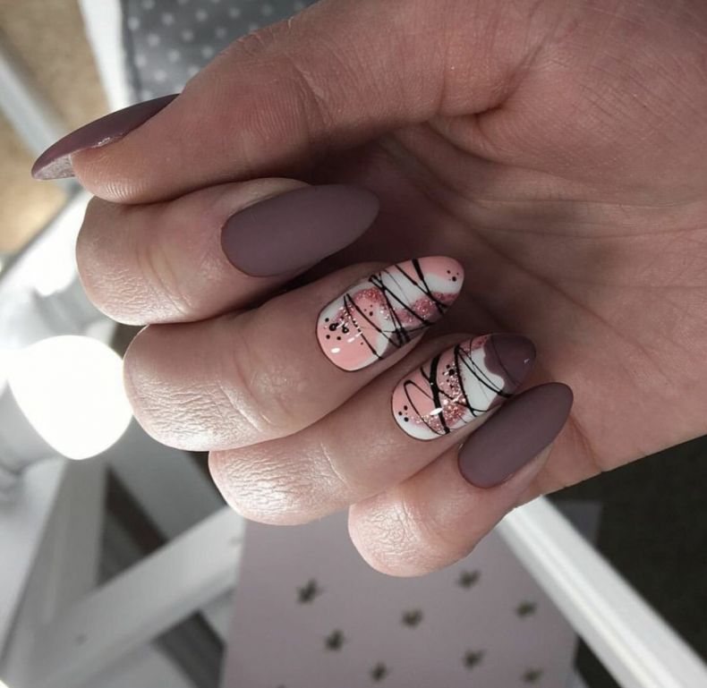Если у вас длинные или миндалевидные ногти, то их можно декорировать абстрактным узорами. Такое решение будет очень популярно в новом сезоне.
