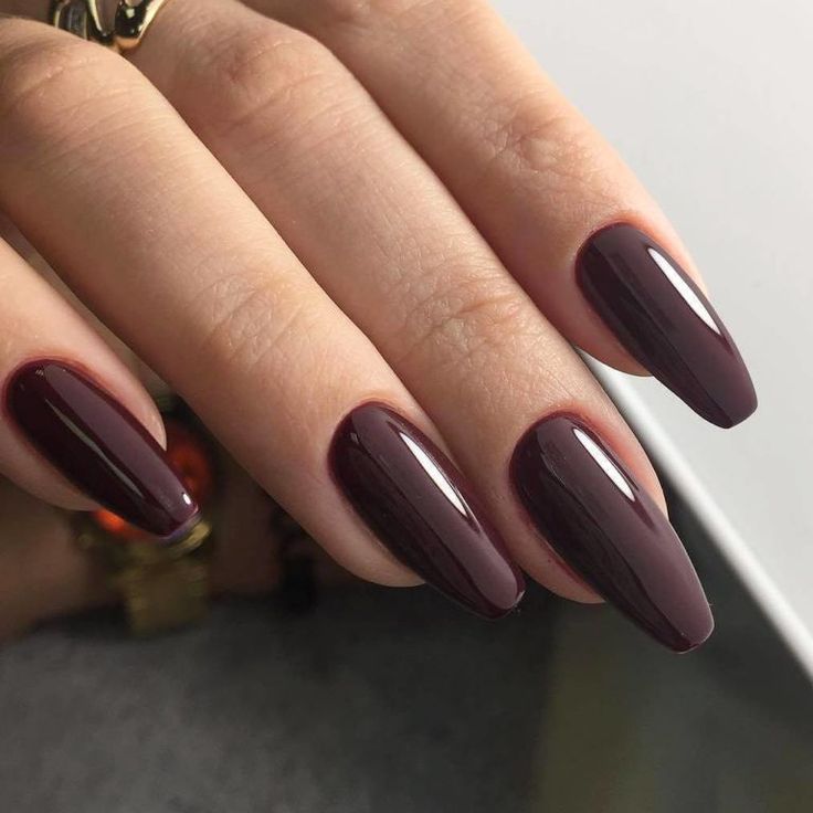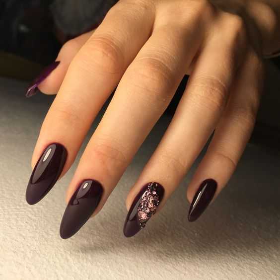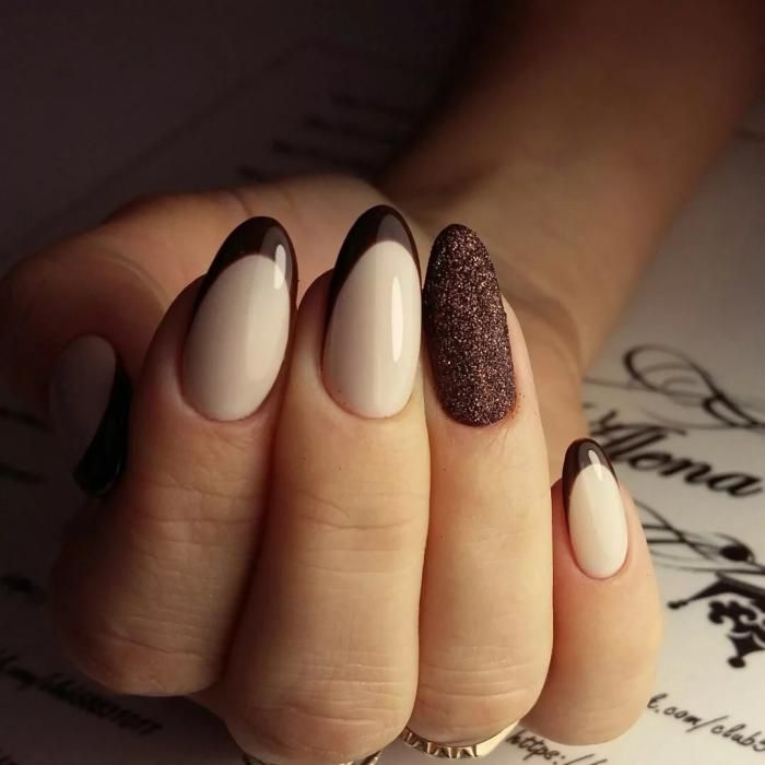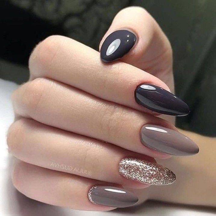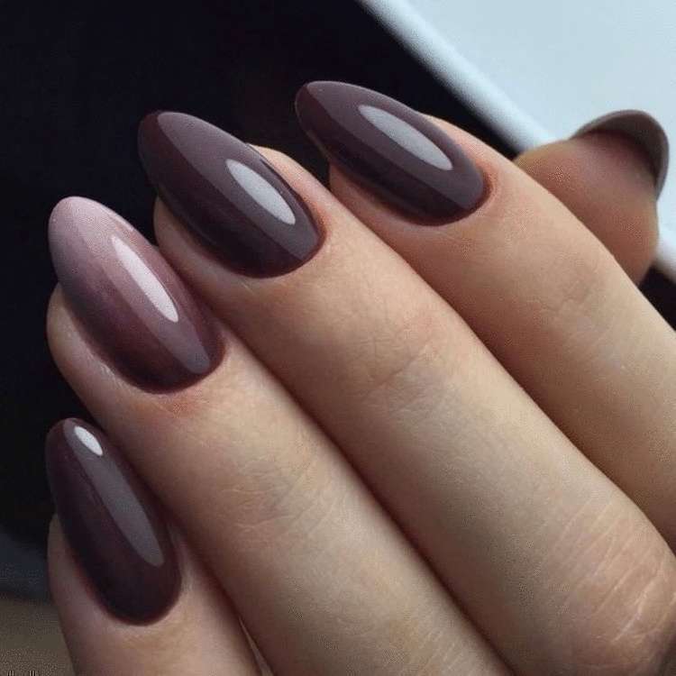 Ноготки-миндаль как на фото недаром считаются универсальными при выполнении покрытия. Для них подходят все оттенки – шоколадный маникюр, почти черные тона, карамельные и нежные пастельные оттенки коричневого.