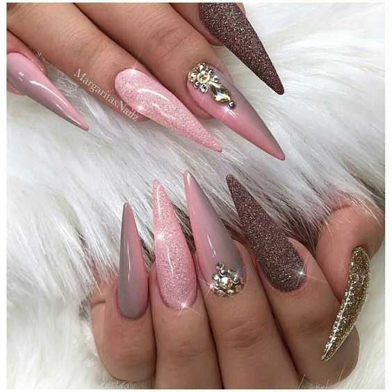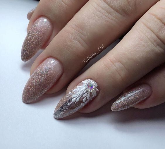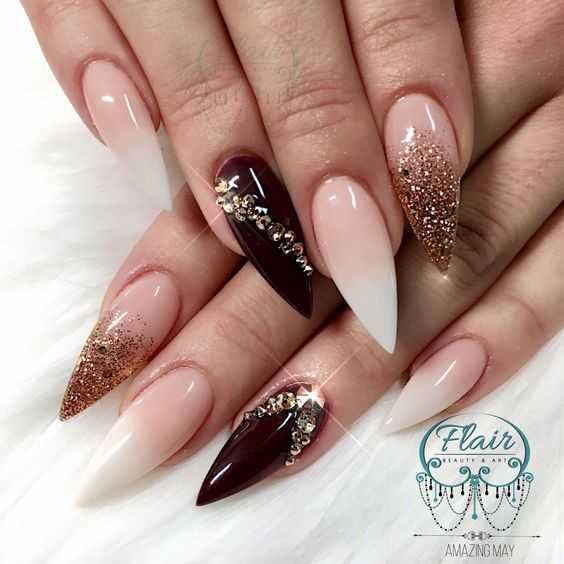 Это сдержанный цвет, его сочетание со стразами и блестками поможет подчеркнуть женственность, сделать образ женщины игривым.