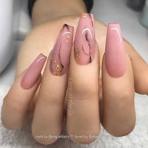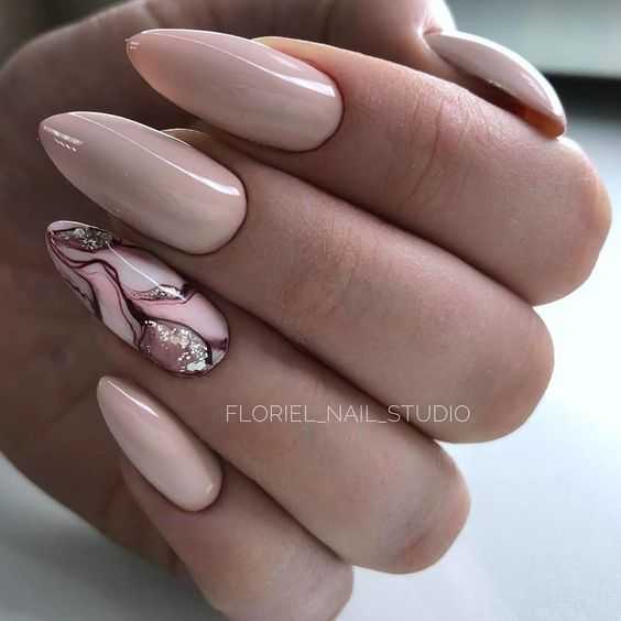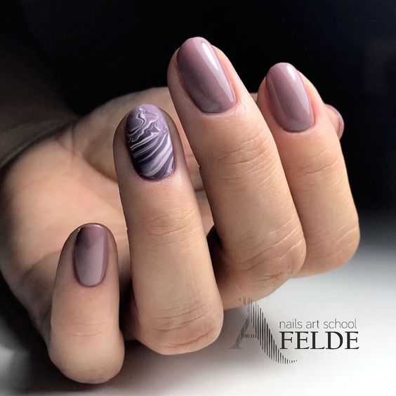 Такой подход к выполнению маникюра придает ему реалистичный и законченный вид. Шоколадный мрамор на ногтевых пластинах рекомендуется располагать выборочно, не декорировать так каждый палец.