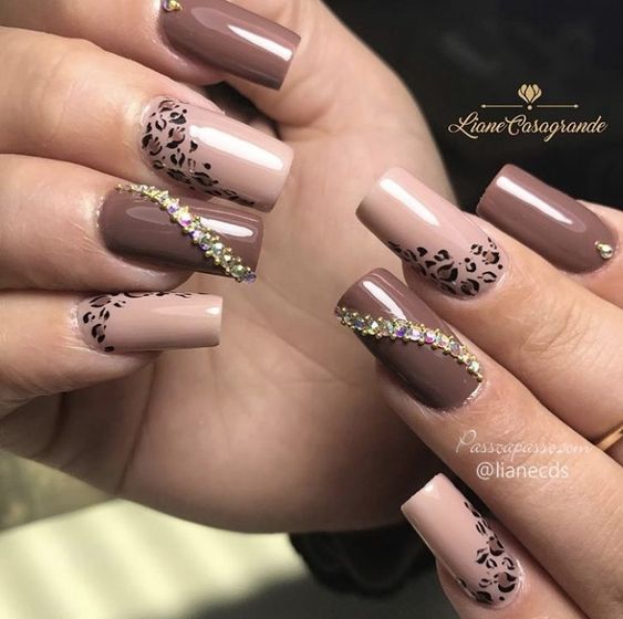Опытные дизайнеры советуют не ограничиваться классической коричнево-кремовой гаммой или неброскими бежевыми тонами. К услугам красавиц – все возможности нейл-индустрии, включая теплую, солнечную или бирюзовую палитру, фактурные покрытия, крупные и мелкие кристаллы, разные виды фольги и покрытий. Дополнять насыщенно-коричневые или сдержанно-светлые основы можно любыми видами декора и украшений, от привычного глиттера, до 3D-лепки и восхитительных, натуралистичных наклеек. Особенно актуально смотрятся имитации змеиной кожи, «съедобные» рисунки. А рекомендации мастеров с фото примерами помогут найти вдохновение, и создать свой собственный, невероятно притягательный или смелый образ.