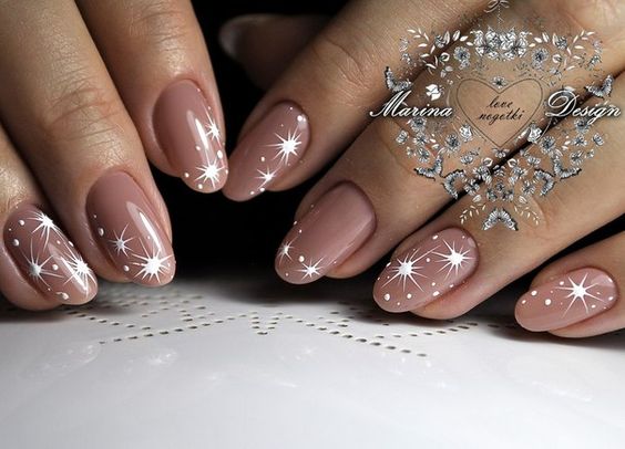 Чтобы создать градиент, рекомендуется использовать темные оттенки, которые будут плавно переходит в белый цвет. Градиент можно дополнить мелкими блестками.