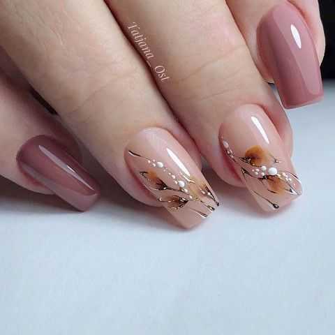 Для создания нежного нейл-арта рекомендуется использовать светлые оттенки коричневого цвета — например, бежевый, терракотовый, карамельный. Декоративных элементов должно быть по минимуму.
