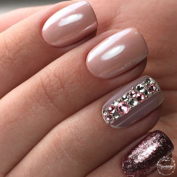 Свежий тренд nail-дизайна. Выполняется легко даже собственными силами, если есть желание сделать маникюр самостоятельно, а выглядит просто сногсшибательно. Роскошный дизайн ногтей со стразами сможет поднять настроение любой женщине. Красивые переливы, ярки оттенки, интересные дизайнерские элементы – это все то, что будет модно в этом сезоне.