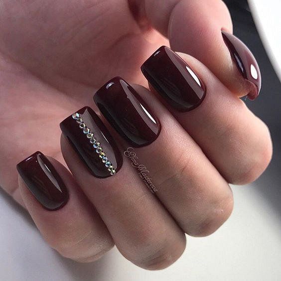 КОРИЧНЕВЫЙ МАНИКЮР С ДЕКОРОМ СТРАЗАМИ