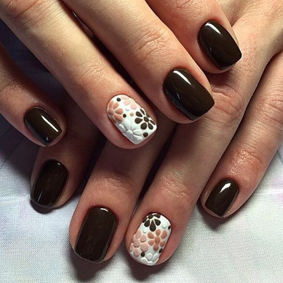 Коричневый маникюр довольно универсальный цвет, при этом он хорошо сочетается с различными цветами. Обычно мастера маникюра выбирают несколько топовых сочетаний коричневого цвета.
