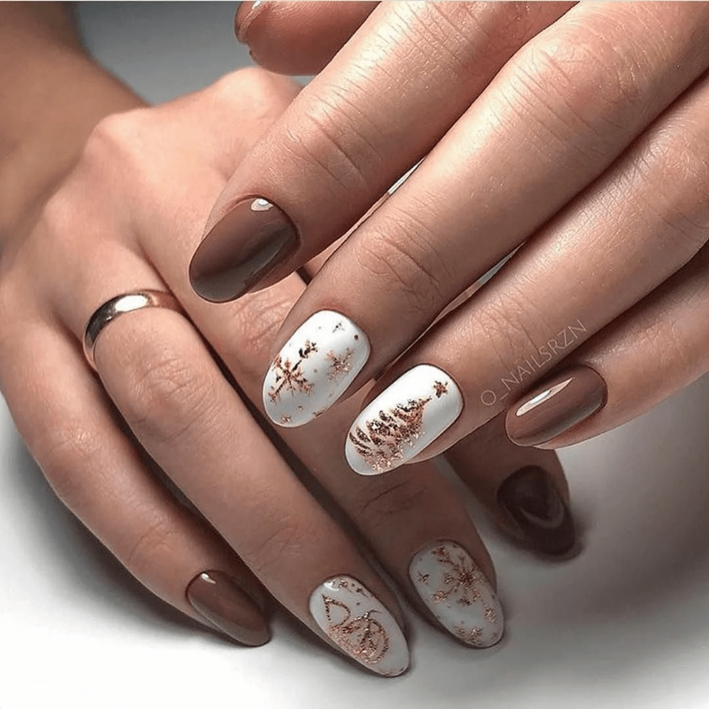 МАНИКЮР КОРИЧНЕВЫЙ С БЕЛЫМ
