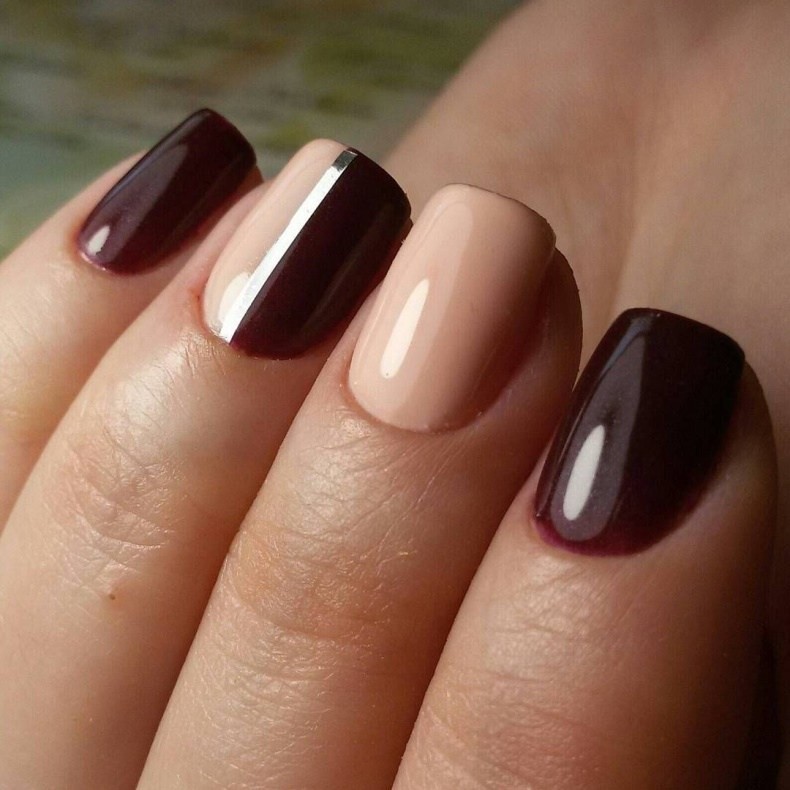 У большинства девушек короткие ногти и приходится выдумывать дизайн, который визуально сделает их чуть длиннее. Темные коричневые оттенки не очень подходят для коротких ногтей, но из положения можно выйти следующим образом: комбинировать коричневый с бежевым гель-лаком, не использовать крупный декор и множество рисунков, стараться сделать маникюр в стиле минимализм, чтобы не перегружать дизайн. Примеры оформления коротких ногтей с помощью коричневого гель-лака разных оттенков, смотрите в подборке фото.