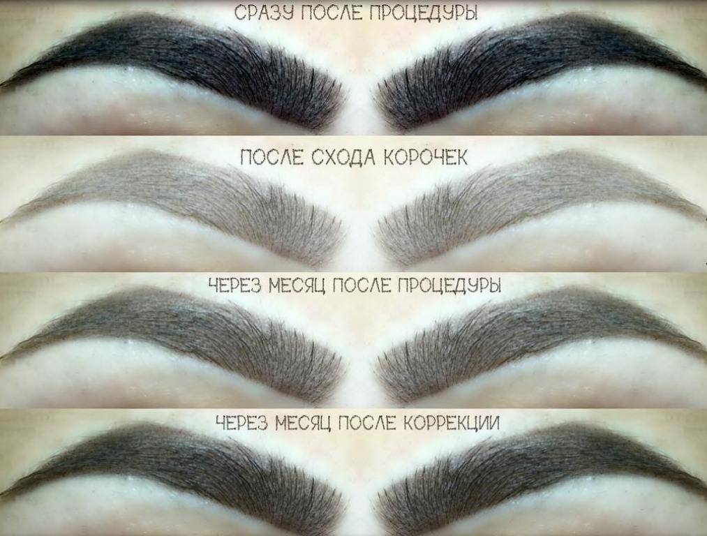 При соблюдении всех правил ухода эпидермис заживет достаточно быстро, а новые брови будут радовать долго. Через месяц можно воспользоваться коррекцией. Это позволит косметологу убрать возможные недочеты, а также проверить заживление тканей.