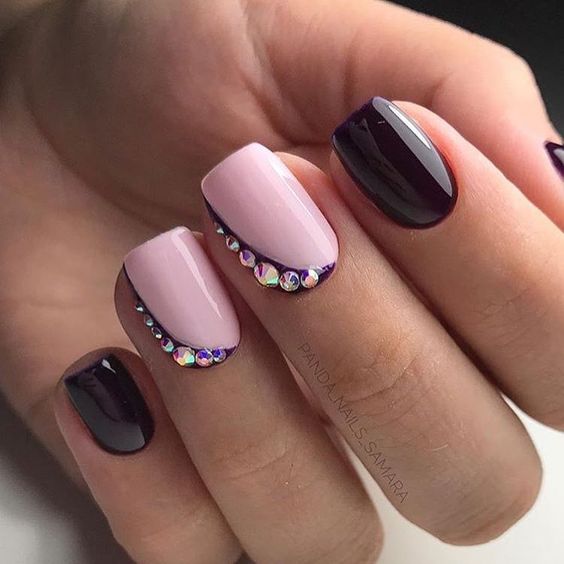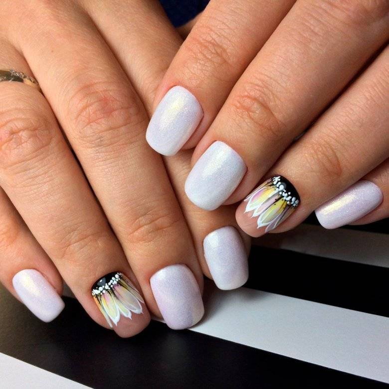 Акцентный ноготь. Это техника, при которой на одном или нескольких ногтях наносится яркий или декоративный лак, выделяющийся на фоне остальных. Вы можете использовать блестки, стразы, цветовые камни или другие декоративные элементы, чтобы придать ногтям индивидуальность.