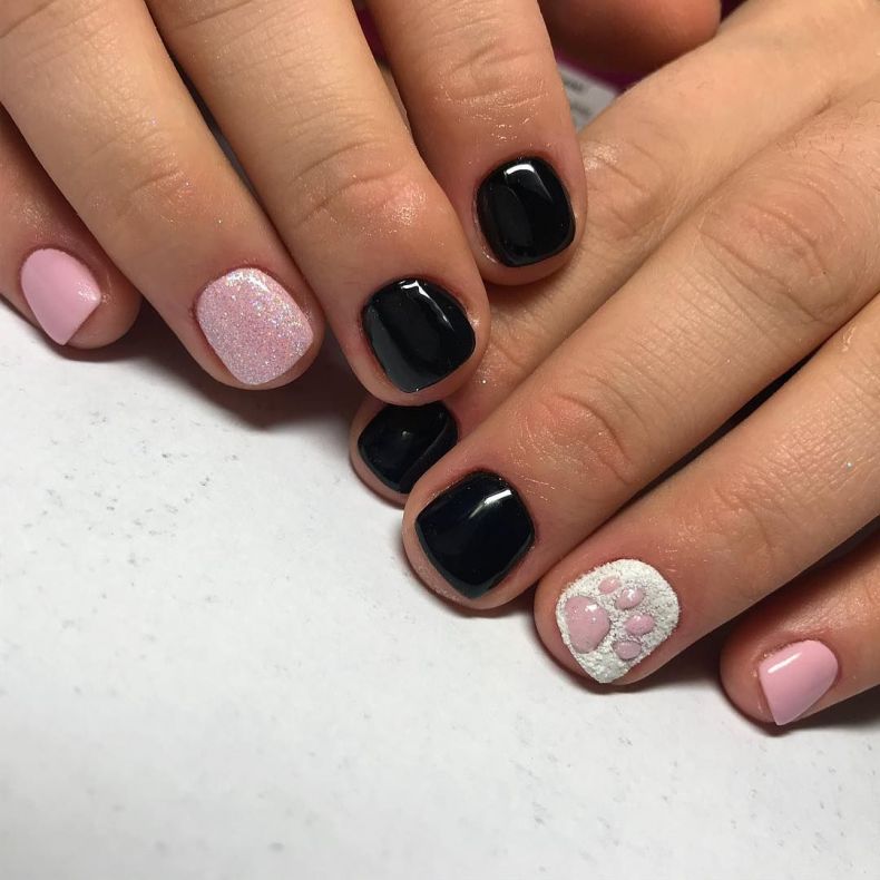 На коротких ногтях прекрасно смотрятся логотипы или надписи, что, в этом году считается популярным трендом. Что не скажешь про рисунок в виде мелкой сетки, которые лучше не использовать, или заменить сетку на более крупную. Еще одной модной тенденцией для коротких ногтей в этом году является обводной маникюр, когда ярким цветом выделяются края ногтя.