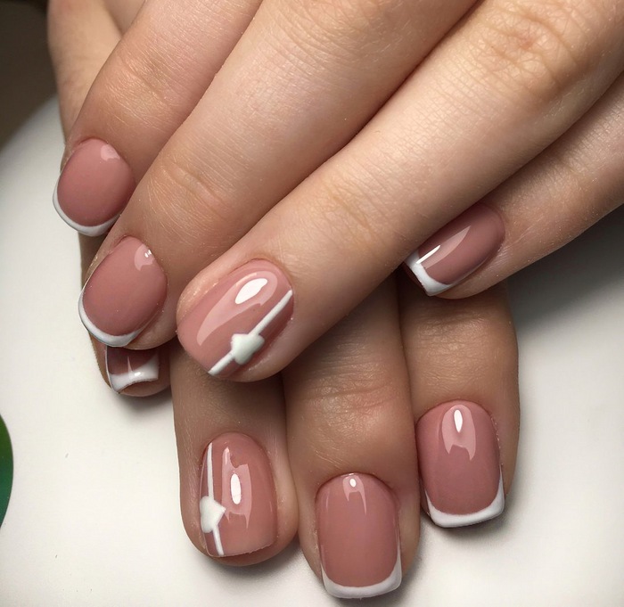 Френч (французский маникюр) давно и прочно вошел в один из самых популярных запросов наших женщин. Он представляет собой ногти, покрытые лаком нюдовых оттенков (светло-бежевого или нежно-розового). Необычно красиво и ярко он на коротких ногтях. Особенно, где линия улыбки и область лунки закрашены черным