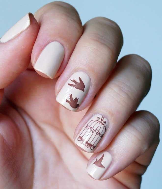 Холодное время года популярно спокойными тонами и минимальным декорированием. Теплый оттенок с утонченным рисунком идеально впишется в прохладную осень или бурю из снегопада, грея воспоминания о лете. Осенью и зимой также популярны золотые и серебряные тона. Выбирая данный декор, не наносите на все ногти предлагаемый оттенок. Достаточно украсить 1-2 ноготка среди нежного, нюдового оттенка.