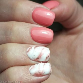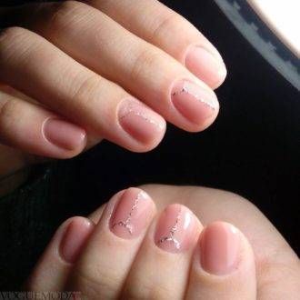 Холодное время года популярно спокойными тонами и минимальным декорированием. Теплый оттенок с утонченным рисунком идеально впишется в прохладную осень или бурю из снегопада, грея воспоминания о лете. Осенью и зимой также популярны золотые и серебряные тона. Выбирая данный декор, не наносите на все ногти предлагаемый оттенок. Достаточно украсить 1-2 ноготка среди нежного, нюдового оттенка.