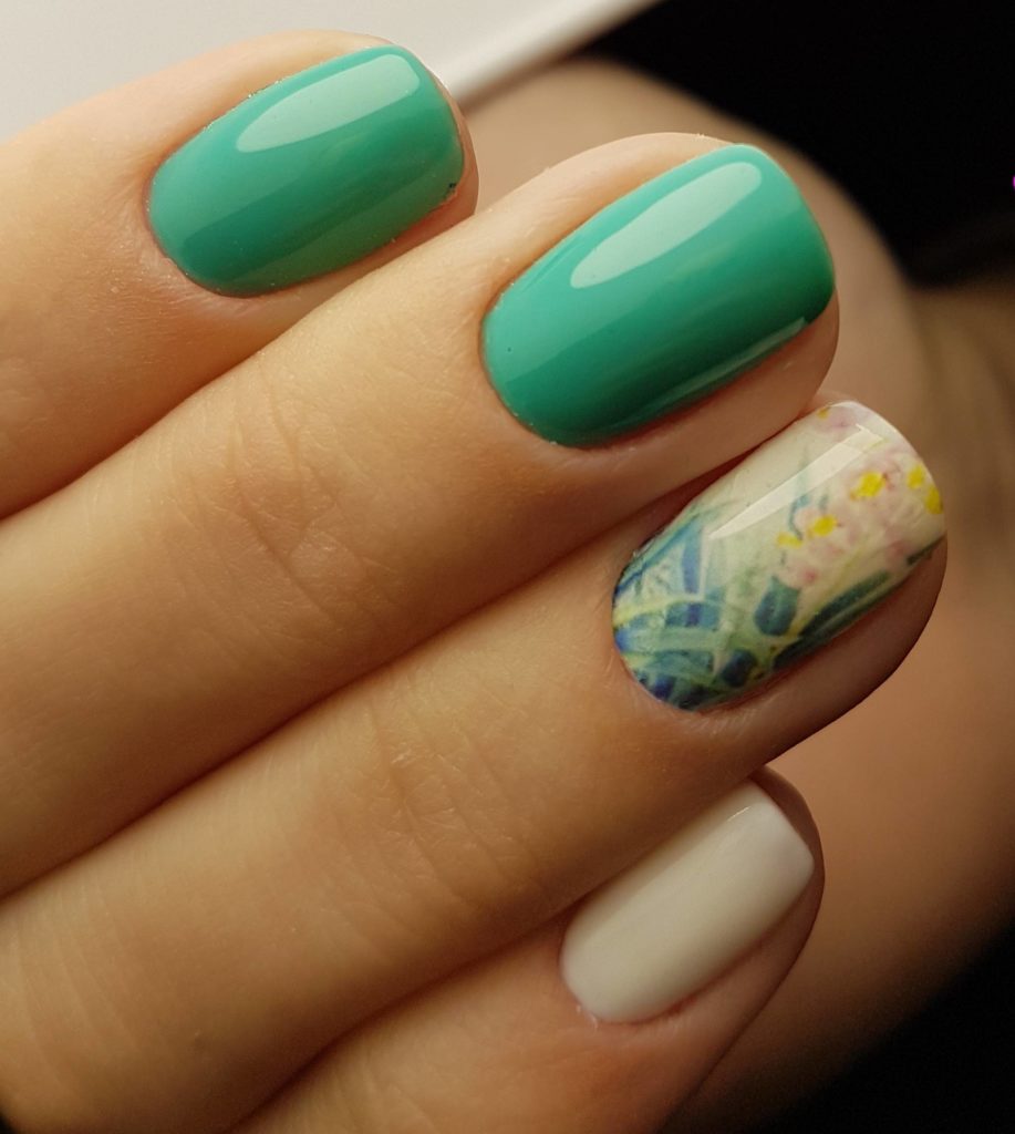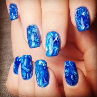 Абстрактные рисунки для коротких ногтей являются одними из самых удачных, так как не имеют четких линий. Самыми оригинальными станут всем знакомые разводы мрамора, которые будут популярны как в своих естественных цветах, так и с использованием несуществующих в природе оттенков. К примеру, на пастельно-бирюзовом сделать линии серебристого цвета. Нетривиальные узоры в стиле абстракции позволят создать динамичный и яркий маникюр.