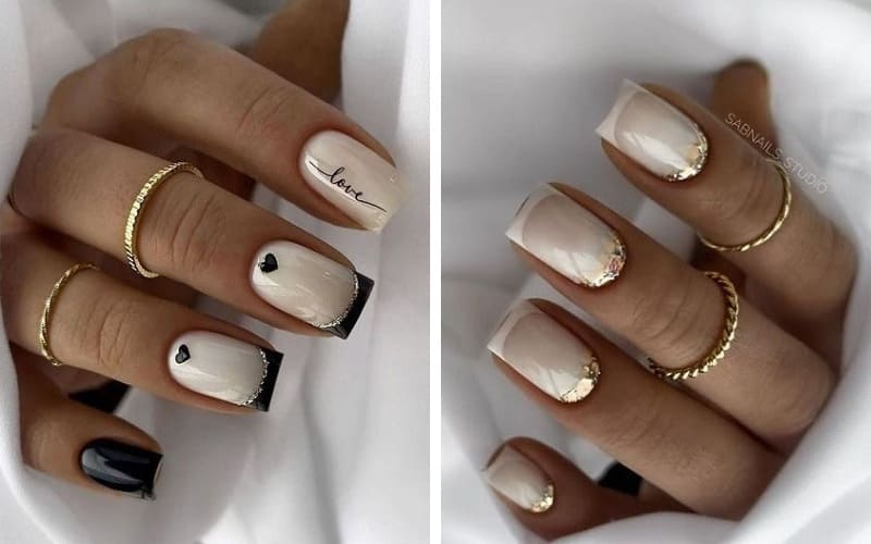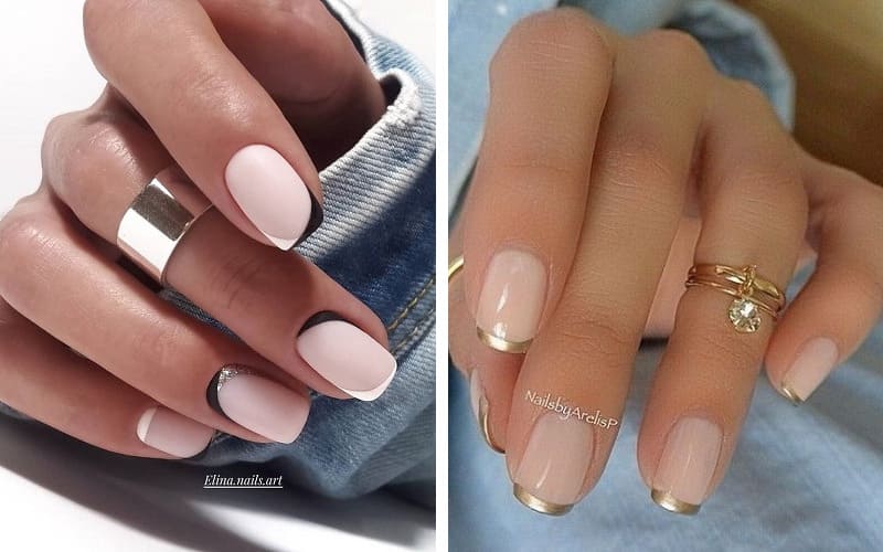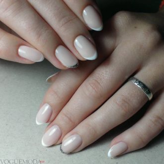 Френч (французский маникюр) давно и прочно вошел в один из самых популярных запросов наших женщин. Он представляет собой ногти, покрытые лаком нюдовых оттенков (светло-бежевого или нежно-розового). Необычно красиво и ярко он на коротких ногтях. Особенно, где линия улыбки и область лунки закрашены черным