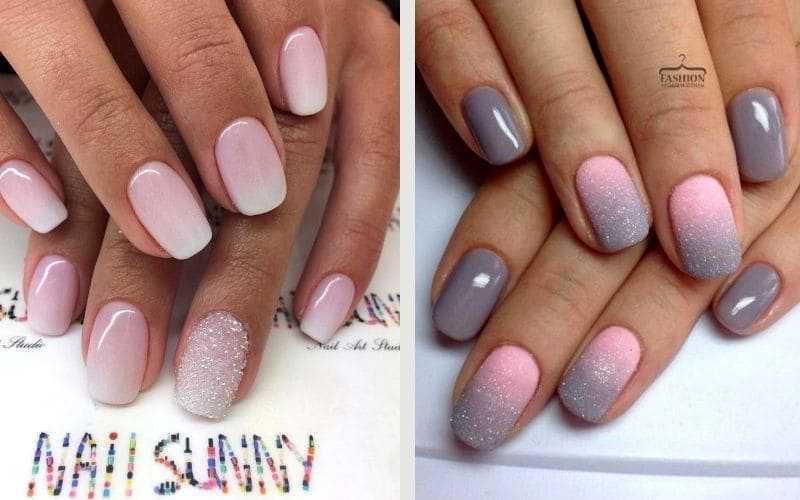 Фото: дизайн омбре с блестками на короткой длине ногтей