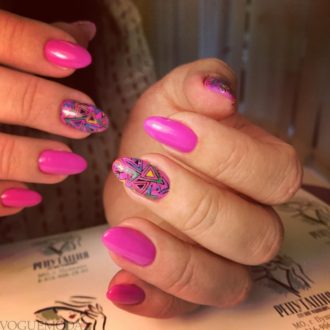 - Любительницам декора и яркого маникюра советуем использовать наклейки, геометрические узоры и смешивание тонов. Очень популярен на данное время градиент. Сочетание цветов выбирайте абсолютно любое: нежная нюдовая гамма в комбинации с пестрой и красочной коллаборацией. Желающим украсить градиент стразами мы посоветуем не переборщить. Достаточно декорировать блестками лишь 1 ноготь, чтобы придать своей персоне женственность и легкость.