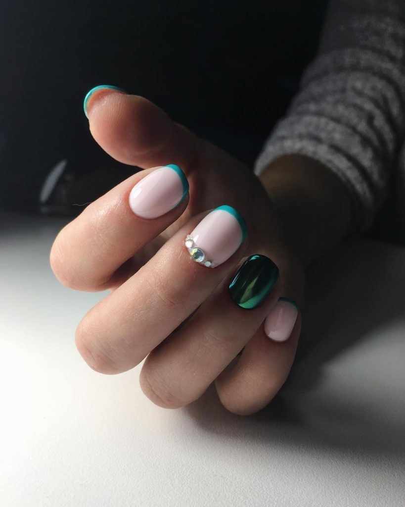 Стиль френч. Разновидностью классического френч-маникюра считается использование необычных цветов и сочетаний. Например, вместо традиционного белого кончика можно использовать яркие или пастельные оттенки. Такой маникюр отлично подойдет для создания романтического образа.