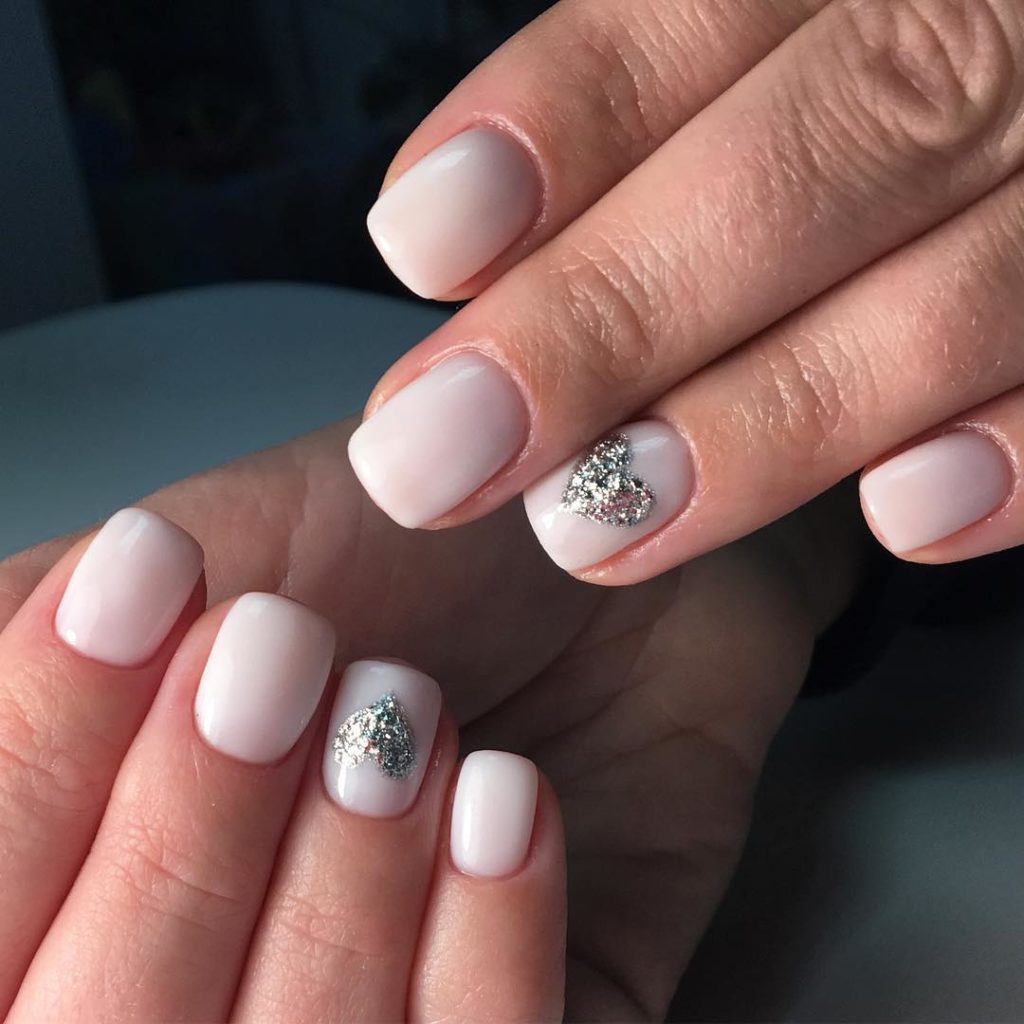 Маникюр на короткие ногти гель лаком с втиркой и блёстками