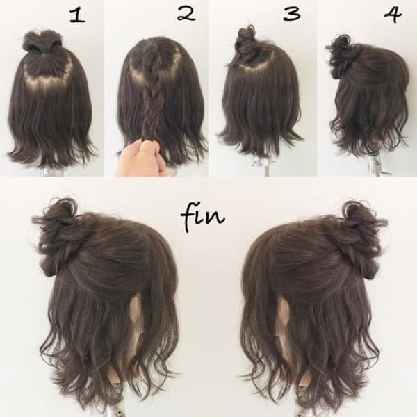 Праздничный пучок на коротких волосах