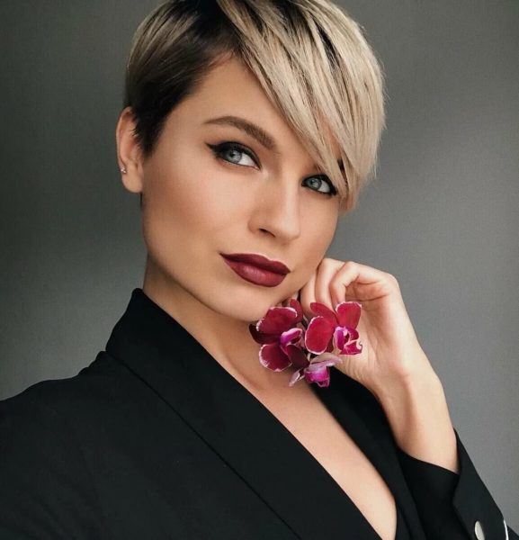 На первый взгляд, прическа пикси идентична с каре или бобом. Но это не так. Главная разница в том, что сверху волосы значительно длиннее, чем у шеи и на висках. Такая прическа выглядит более предпочтительно в ярких и насыщенных цветах. Например, в горьком шоколаде, холодном блонде, цвете имбиря и более смелых оттенках.
