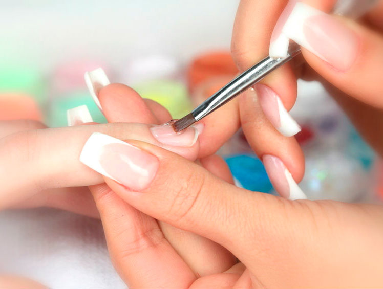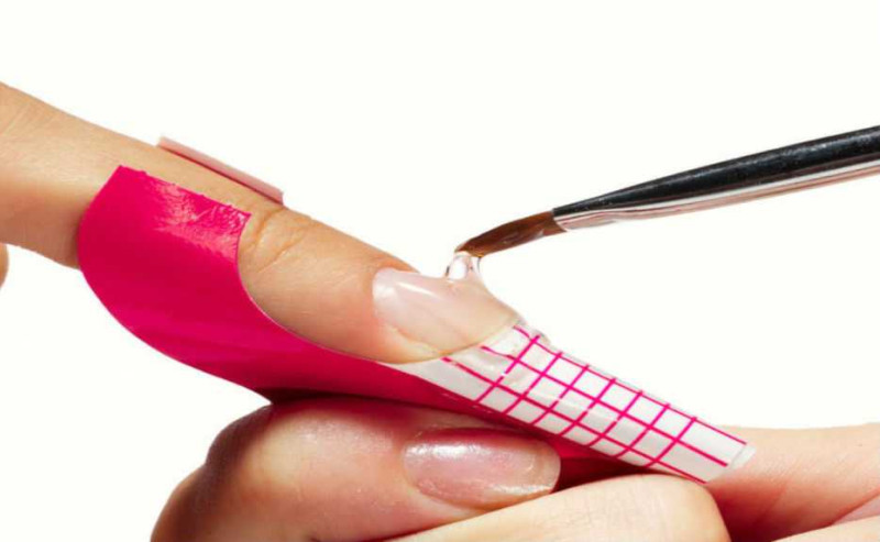 В случае акрилового покрытия после тщательного выравнивая ногтевой пластины (особенно на стыке натурального и наращённого ногтя) производится обезжиривание специальным средством. Далее наносится праймер – своего рода скрепляющий элемент натурального и искусственного слоя, после чего можно приступать к нанесению акрилового покрытия.