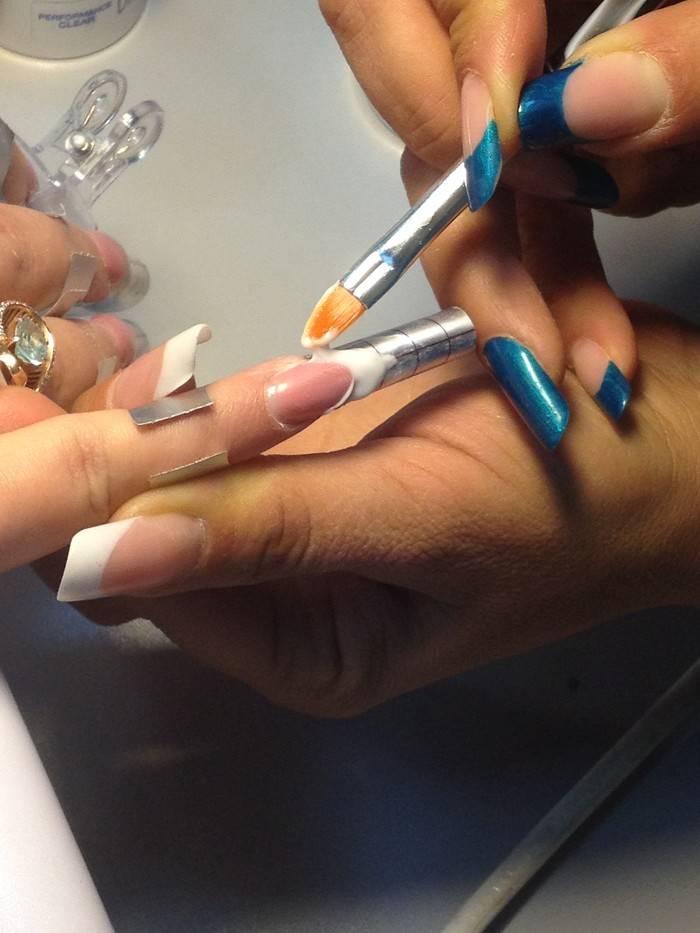 Кроме этого, клеевая прослойка между натуральной ногтевой пластиной и подложкой является наименее прочной составляющей. Для качественного и прочного контакта между клеем и ногтем следует соблюдать своеобразную технологию наращивания. Перед нанесением клея, ноготок всегда следует обрабатывать жидкостью-активатором – это обеспечит хорошую схватываемость и сэкономит время, так как убирает необходимость плотно прижимать каждый типс к натуральной ногтевой поверхности.