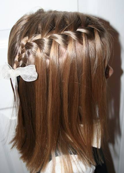 Довольно стильно смотрится прическа — «водопад», особенно на девочках с прямыми длинными волосами.