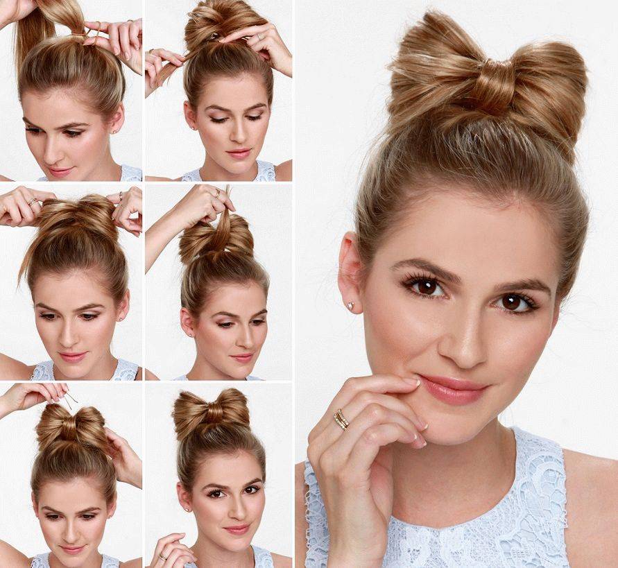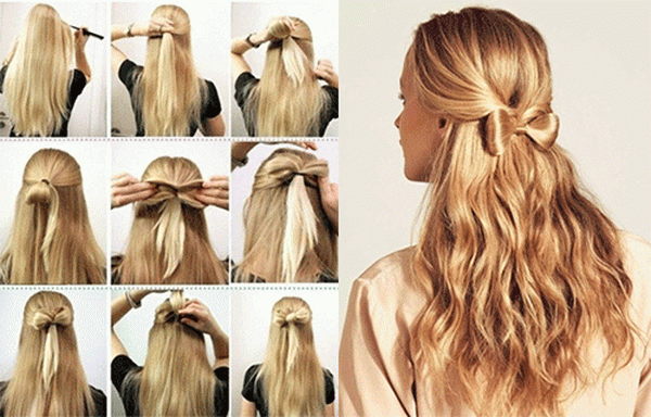 Такой же вариант отлично подходит для средних волос. Созданный в домашних условиях бант отлично подходит для всех случаев: