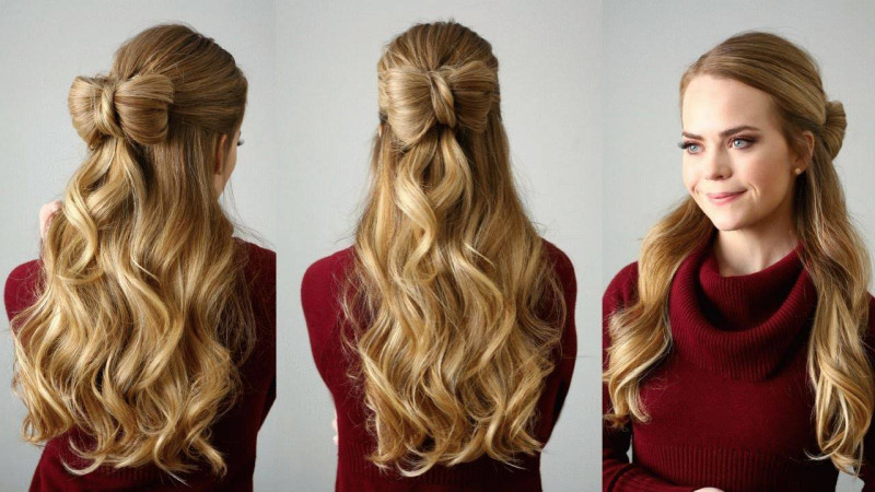 Если планируется вечернее мероприятие, то для этого случая можно выполнить прекрасную прическу. Бант будет с распущенными волосами, что смотрится очень оригинально:
