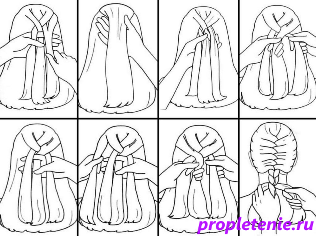 На рисунке, расположенном выше, указана схема выполнения рыбьего хвоста. Причёска уникальна тем, что даже в растрёпанном виде смотрится очень мило.