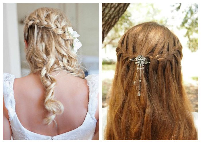 Данная прическа очень похожа на водный поток. Она заключается в том, что часть локонов при плетении спадает вниз, как струи воды. Со стороны смотрится довольно привлекательно и подходит для любых случаев.