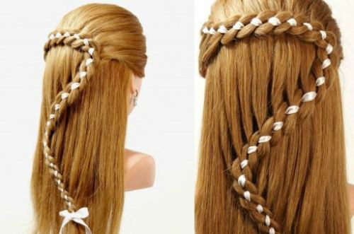 Прическа получила название из-за спускающихся прядей, напоминающих сход воды с гор. Позволяет одновременно иметь косу, но при этом оставить волосы распущенными. Здесь возможно несколько вариантов: