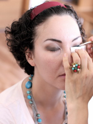Чтобы зрительно отдалить друг от друга близко посаженные глаза, необходимо тщательно выщипать брови у переносицы, а затем немного удлинить их, подрисовав кончики карандашом. На переносицу и внутренние уголки глаз следует нанести светлые тени, а более темные — на середину век, откуда к внешним уголкам глаза их необходимо растушевать. Корректируя разрез глаз контурным карандашом, с внешних сторон линии следует вывести за пределы глаз и слегка растушевать их.