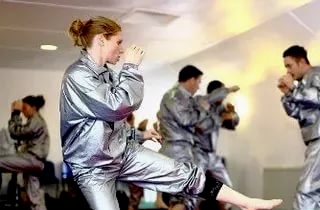 Раздельные костюмы удобны тем, что их можно использовать как в зале, так и на улице. Причем можно надевать по отдельности верхнюю или нижнюю части или весь костюм целиком. Он позволяет коже дышать, так как имеет свободный крой. Под костюм надевается тонкая спортивная одежда из натуральных гигроскопичных тканей.
